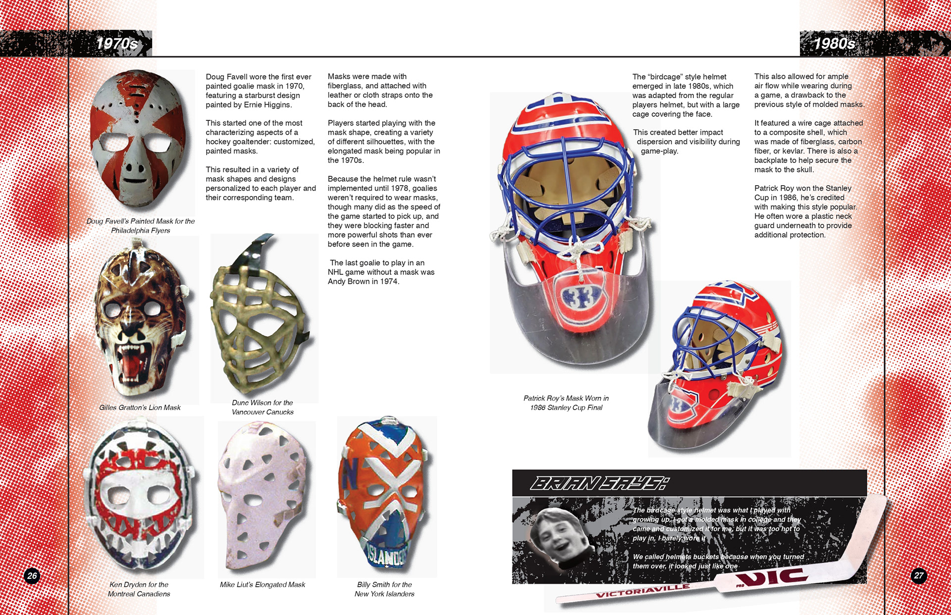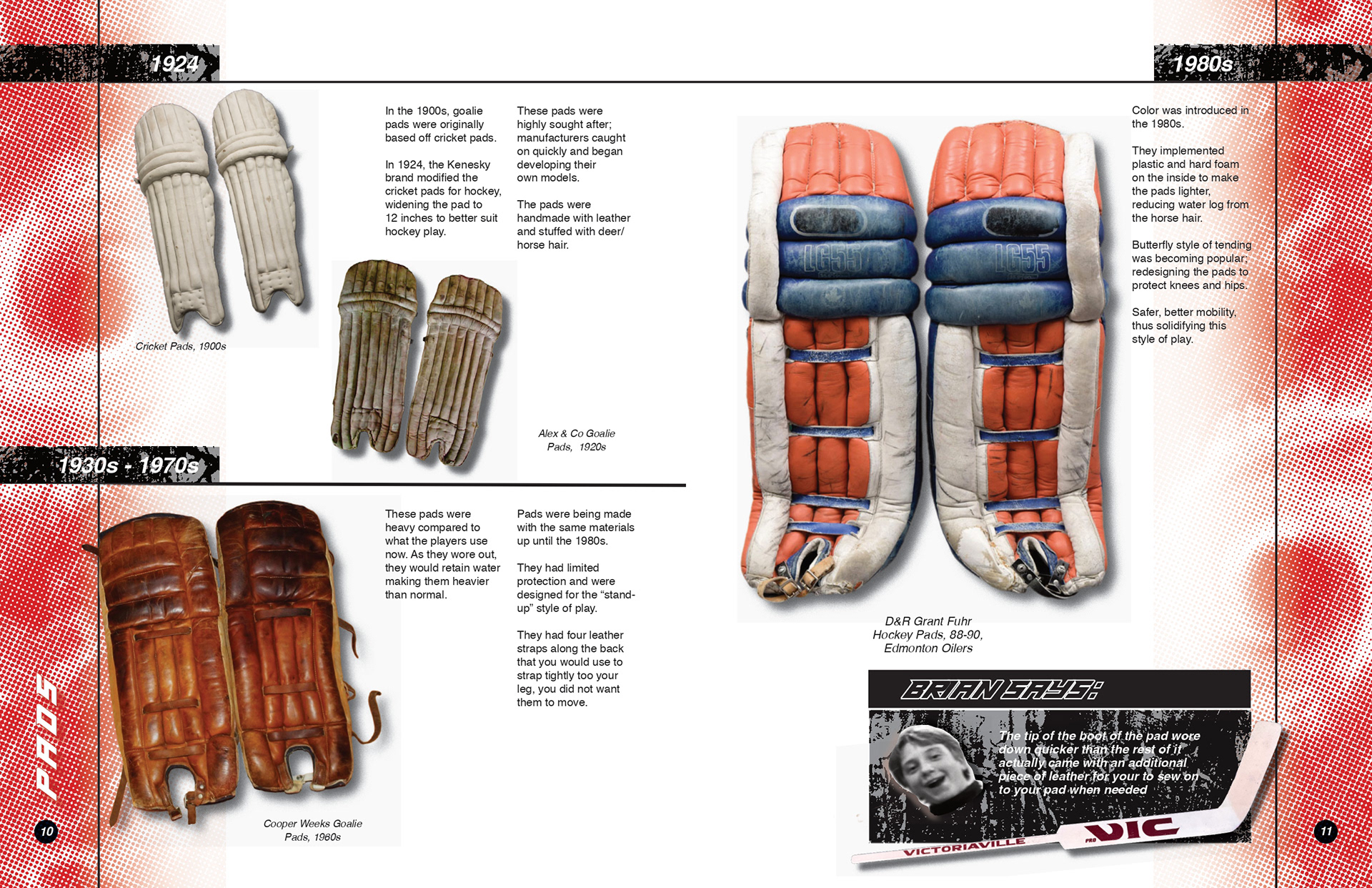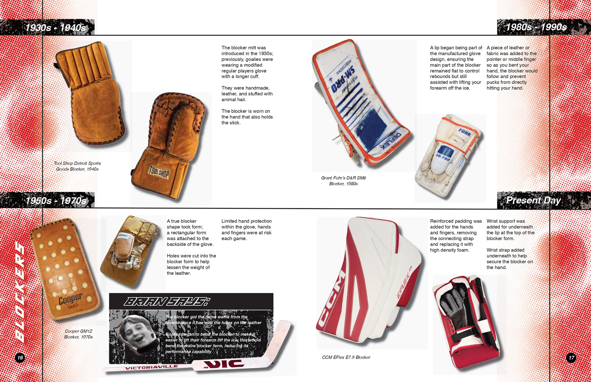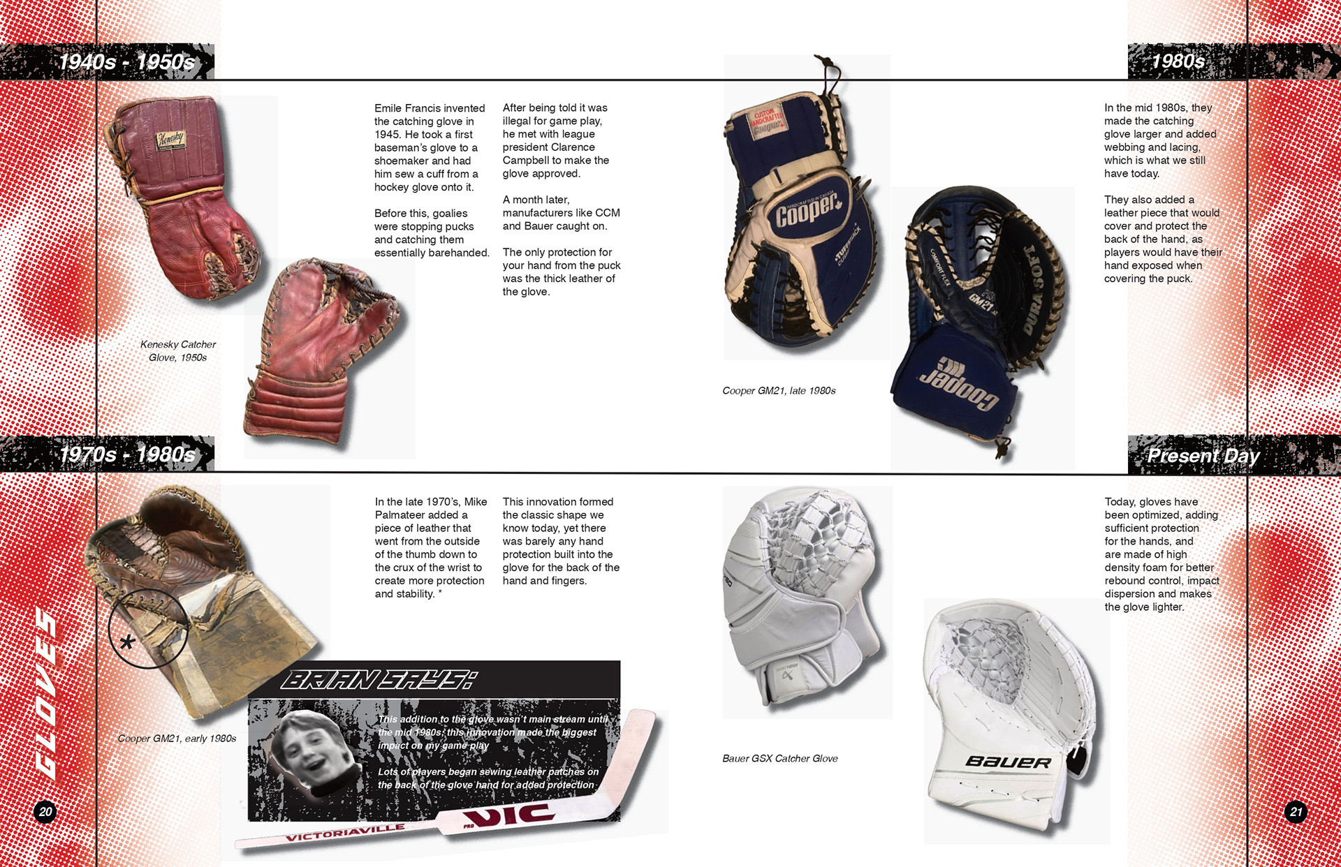 A comprehensive catalogue detailing the evolution of hockey goalie gear over time.
