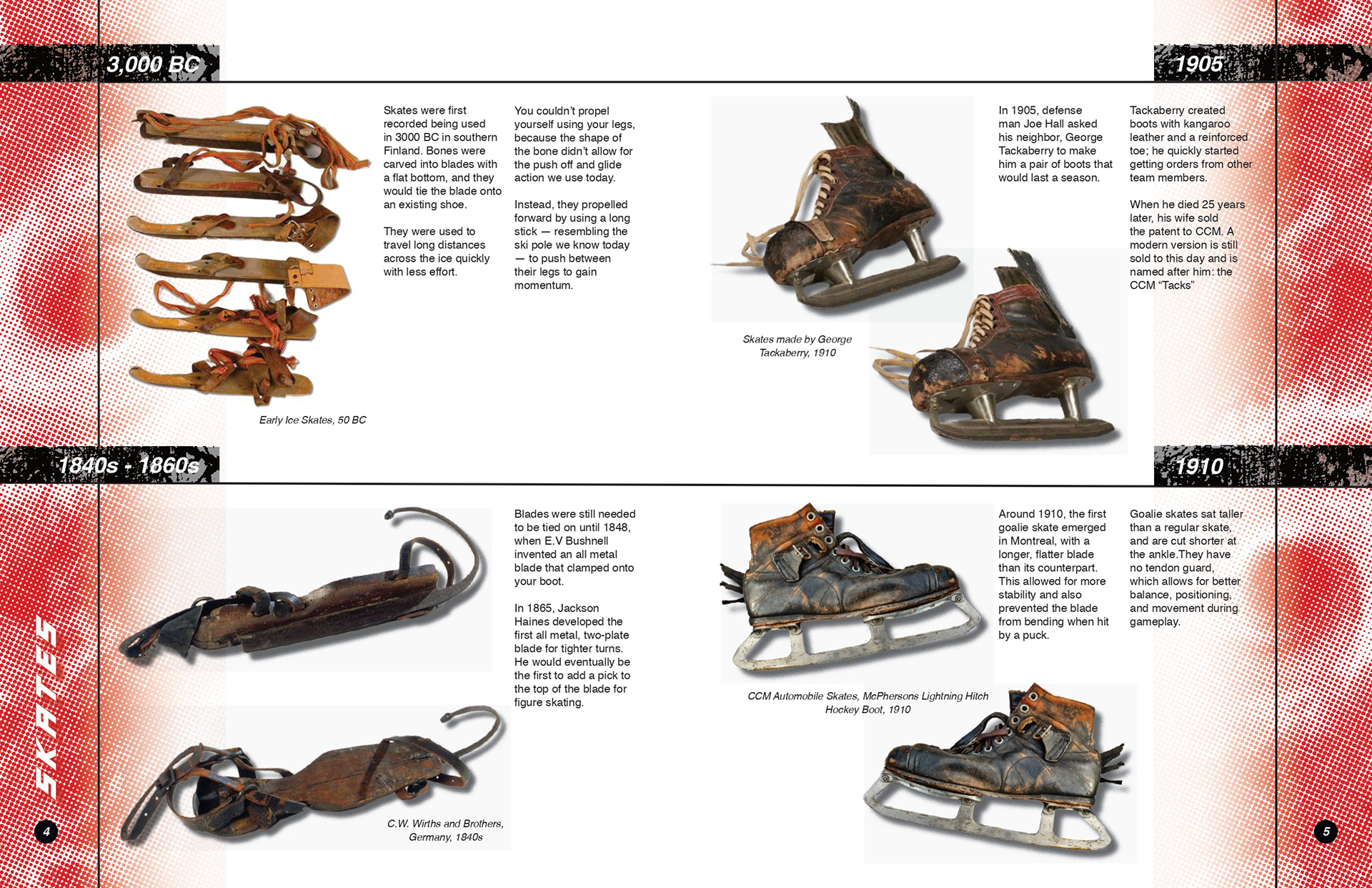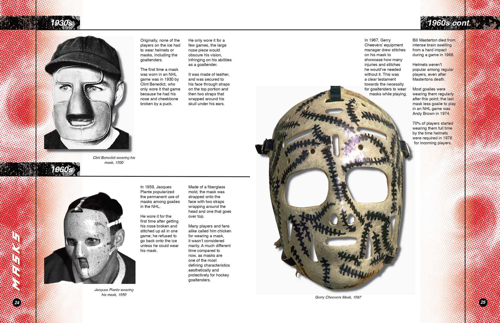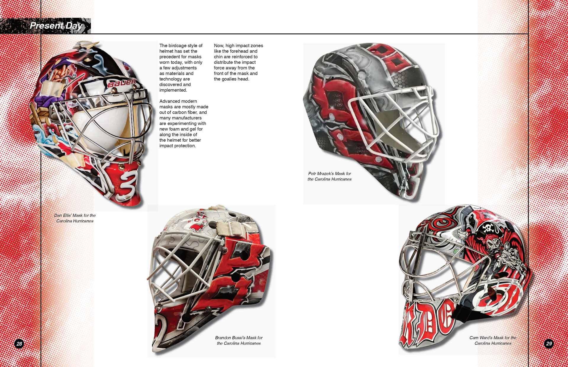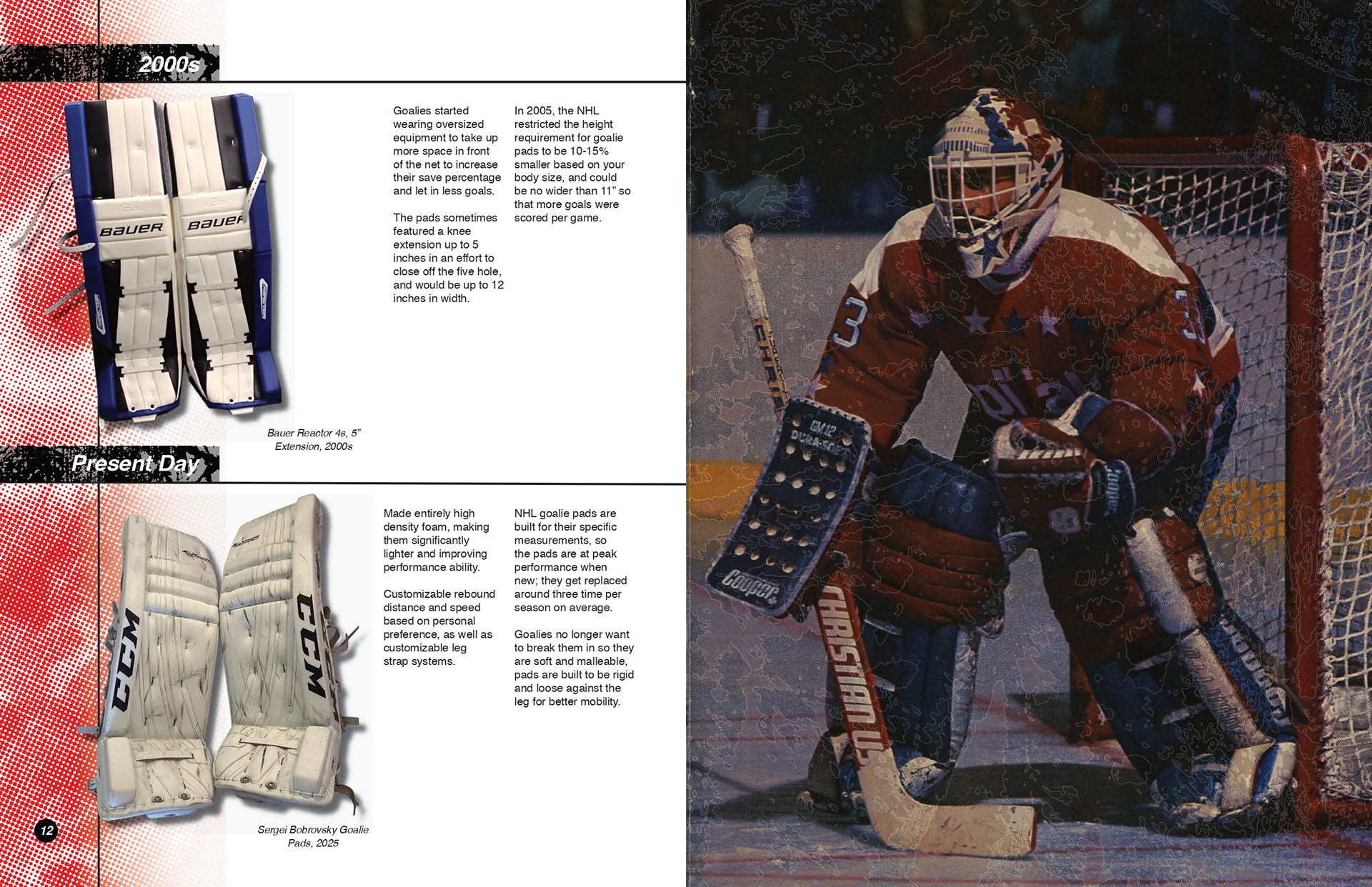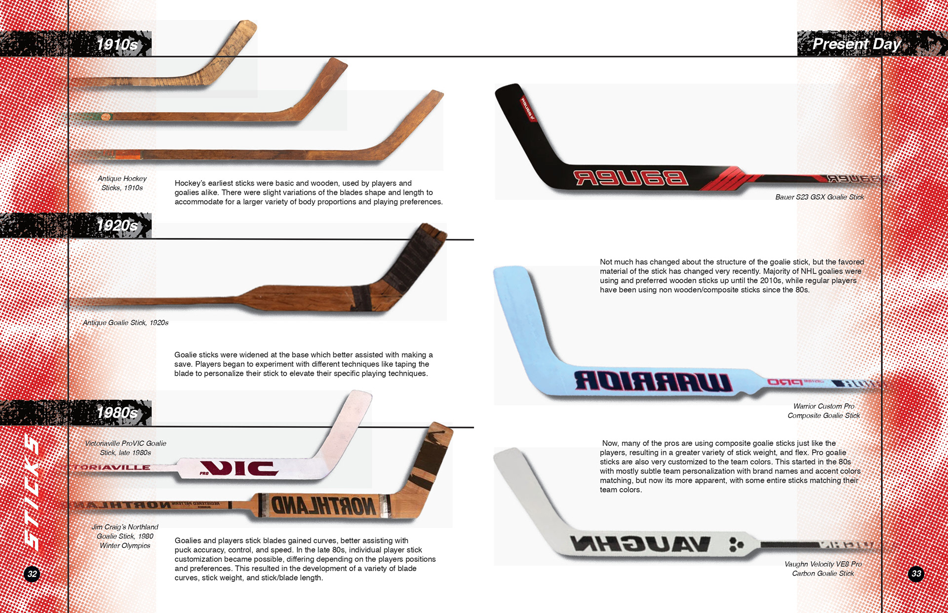 A comprehensive catalogue detailing the evolution of hockey goalie gear over time.