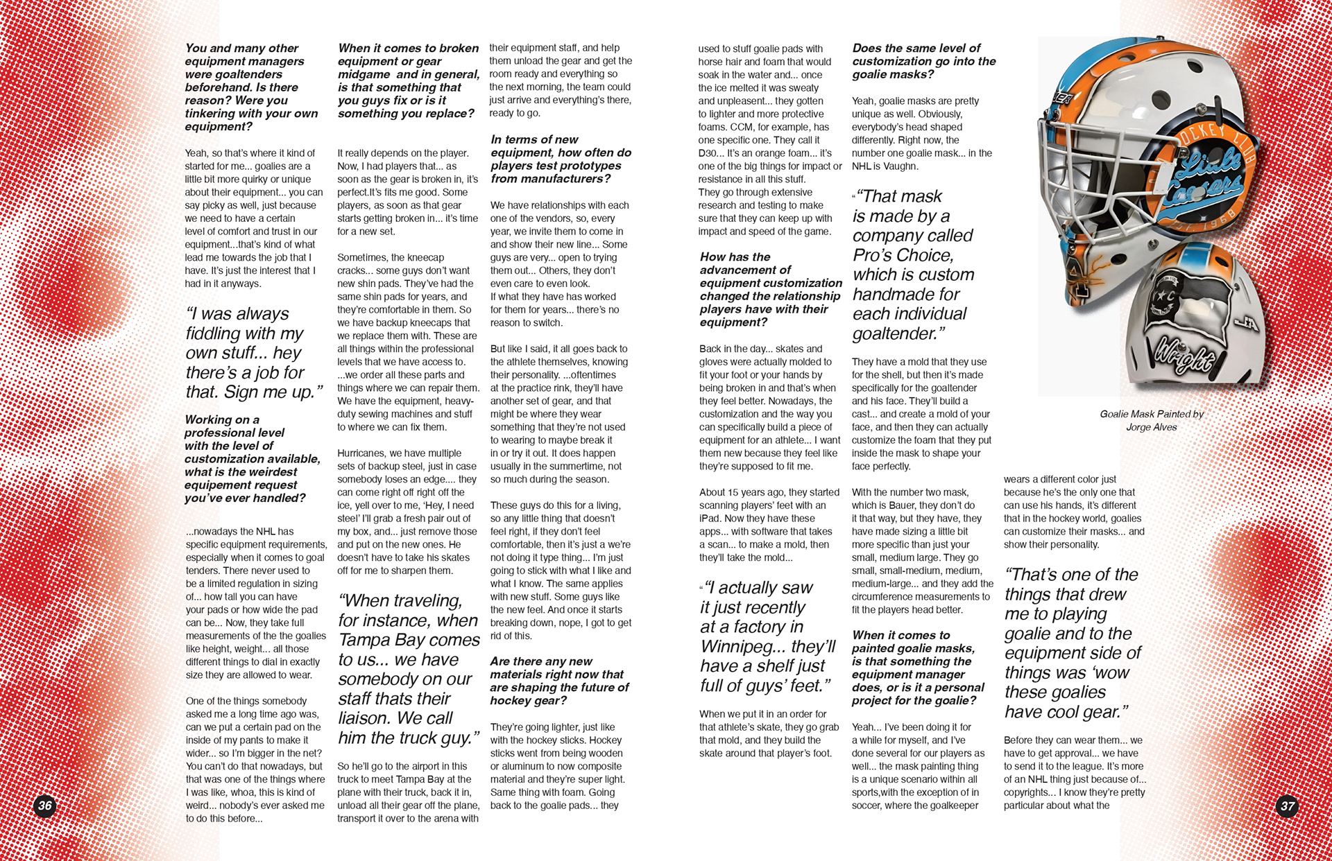 It features an interview with Carolina Hurricanes Head Equipment Manager, Jorge Alves.