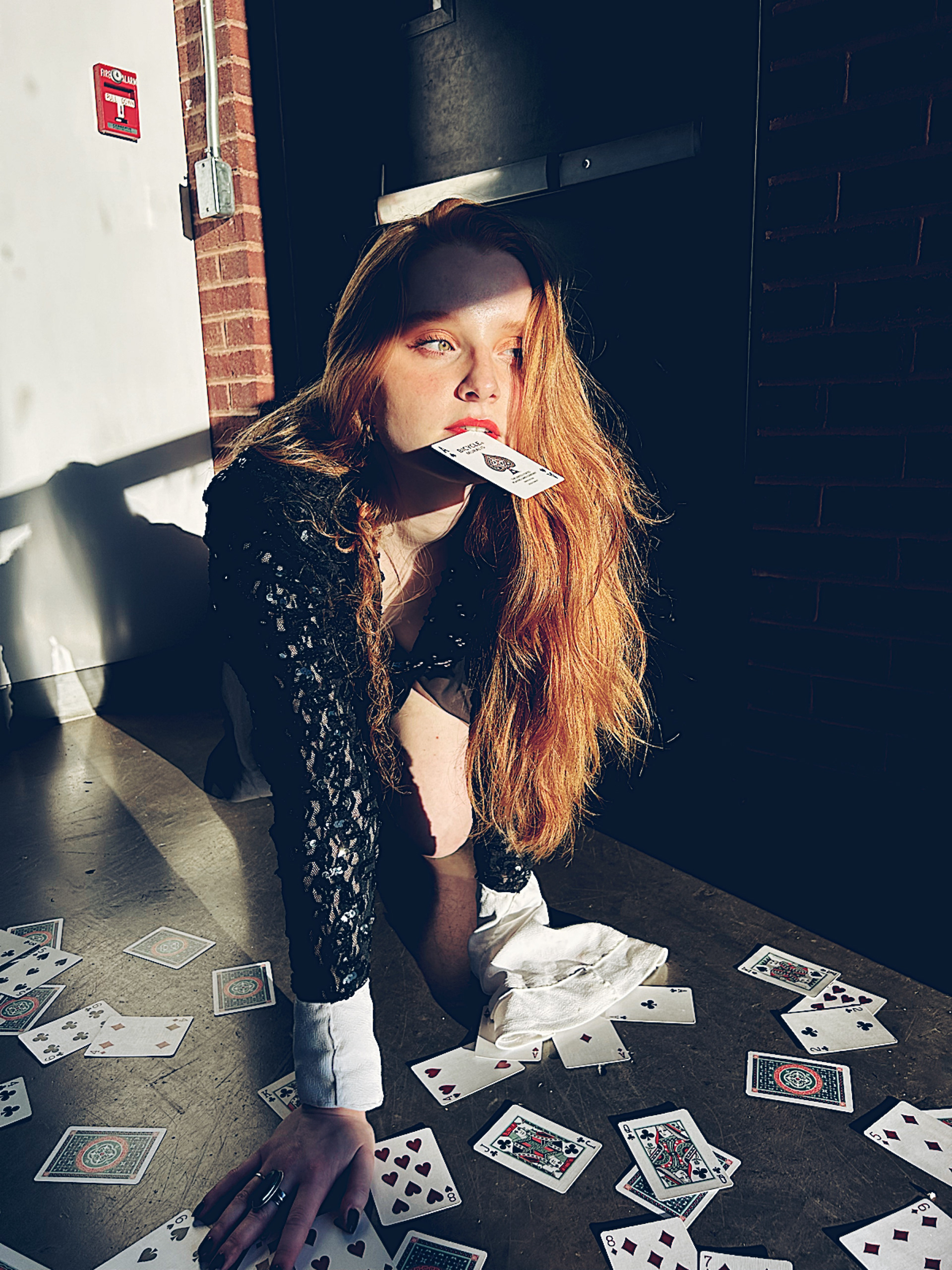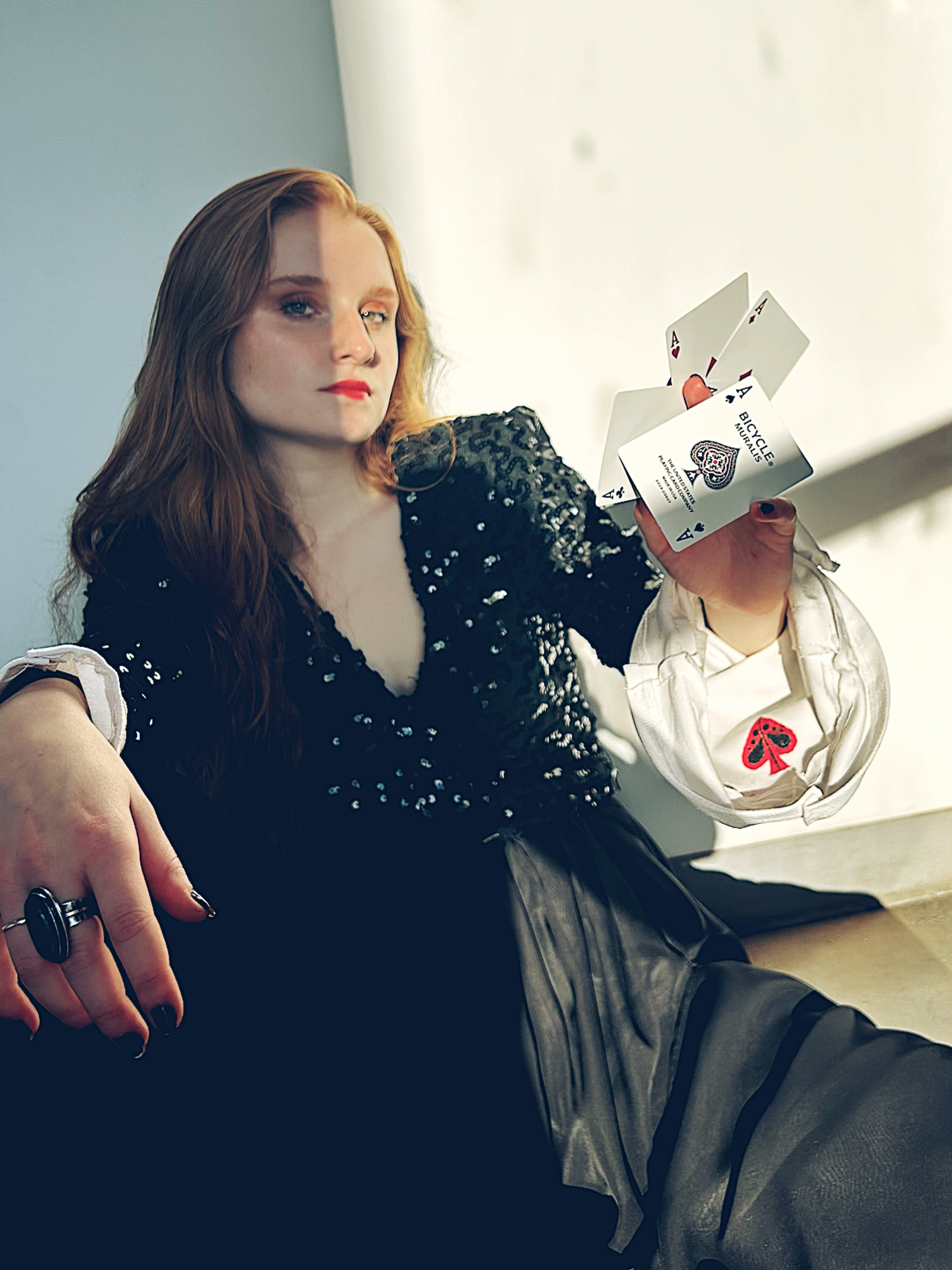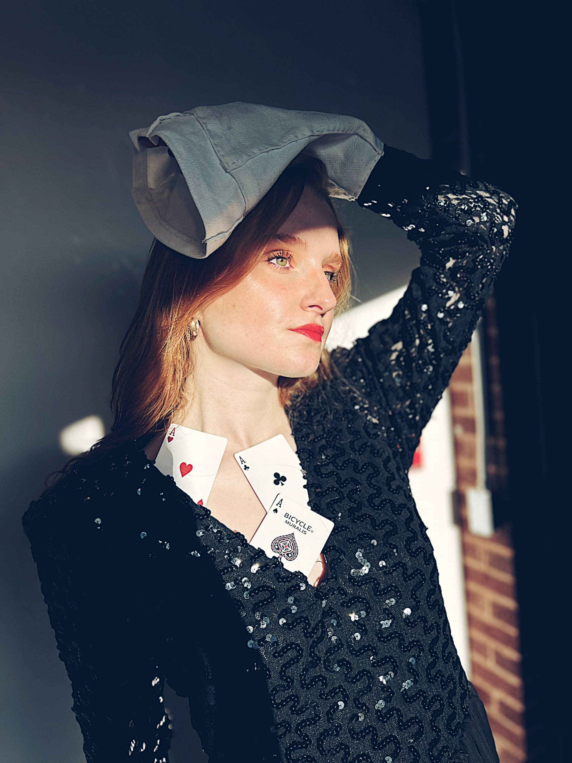 Vintage Jumpsuit, Scrap Fabric, Acrylic Paint, Deck of Cards