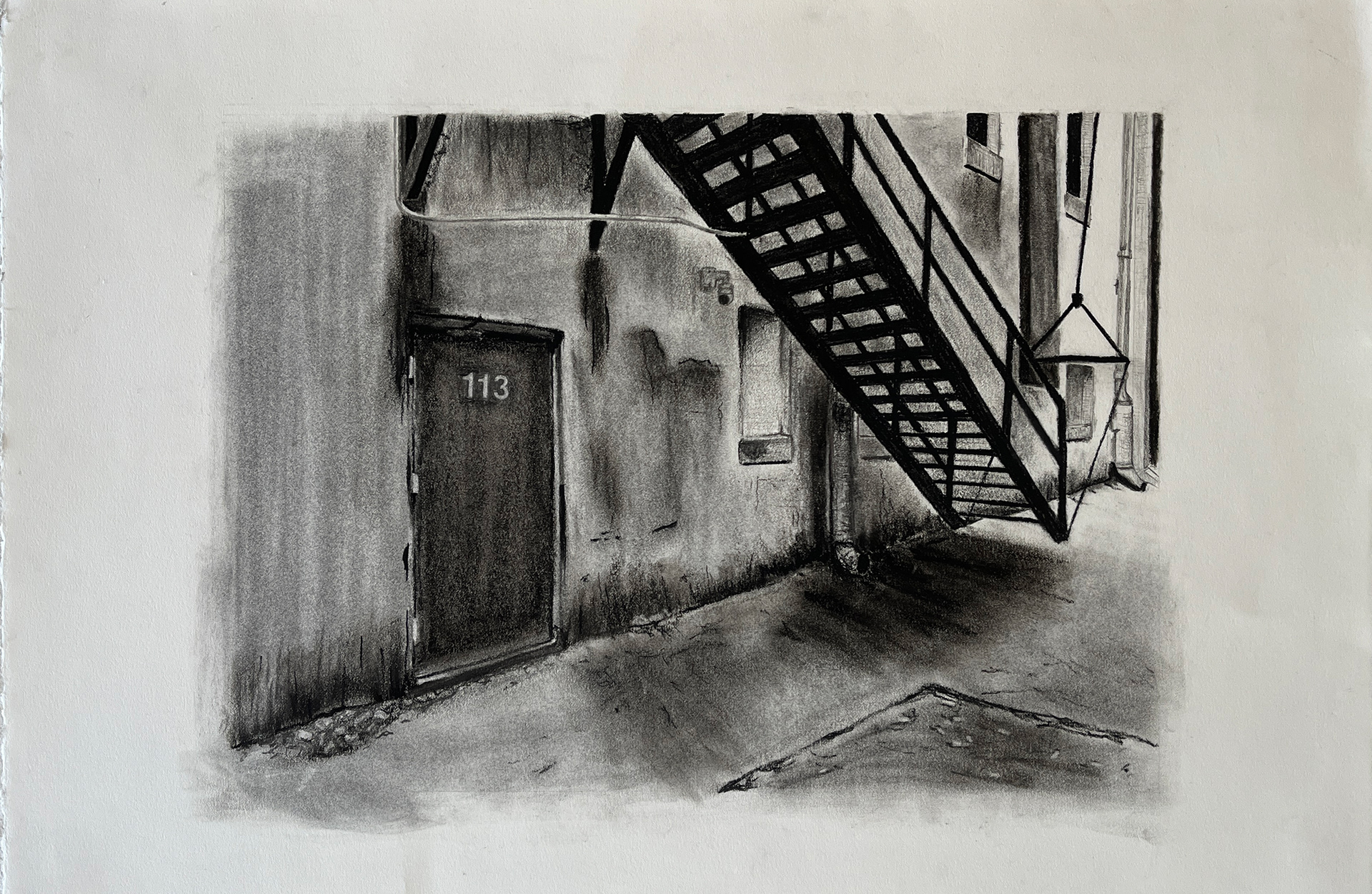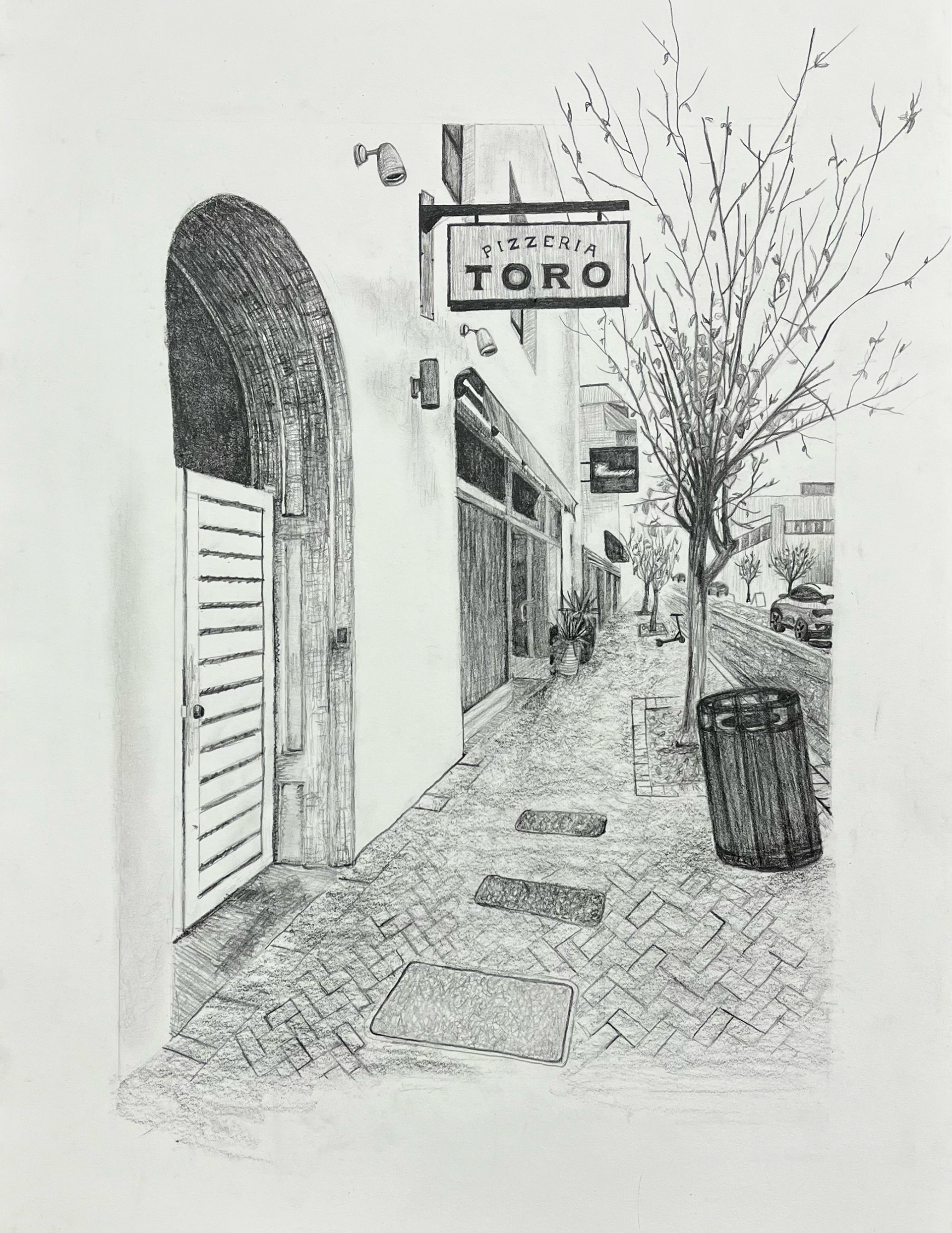 Still Life Two-Point Perspective Drawing of an Alleyway in my Hometown, Durham, NC.