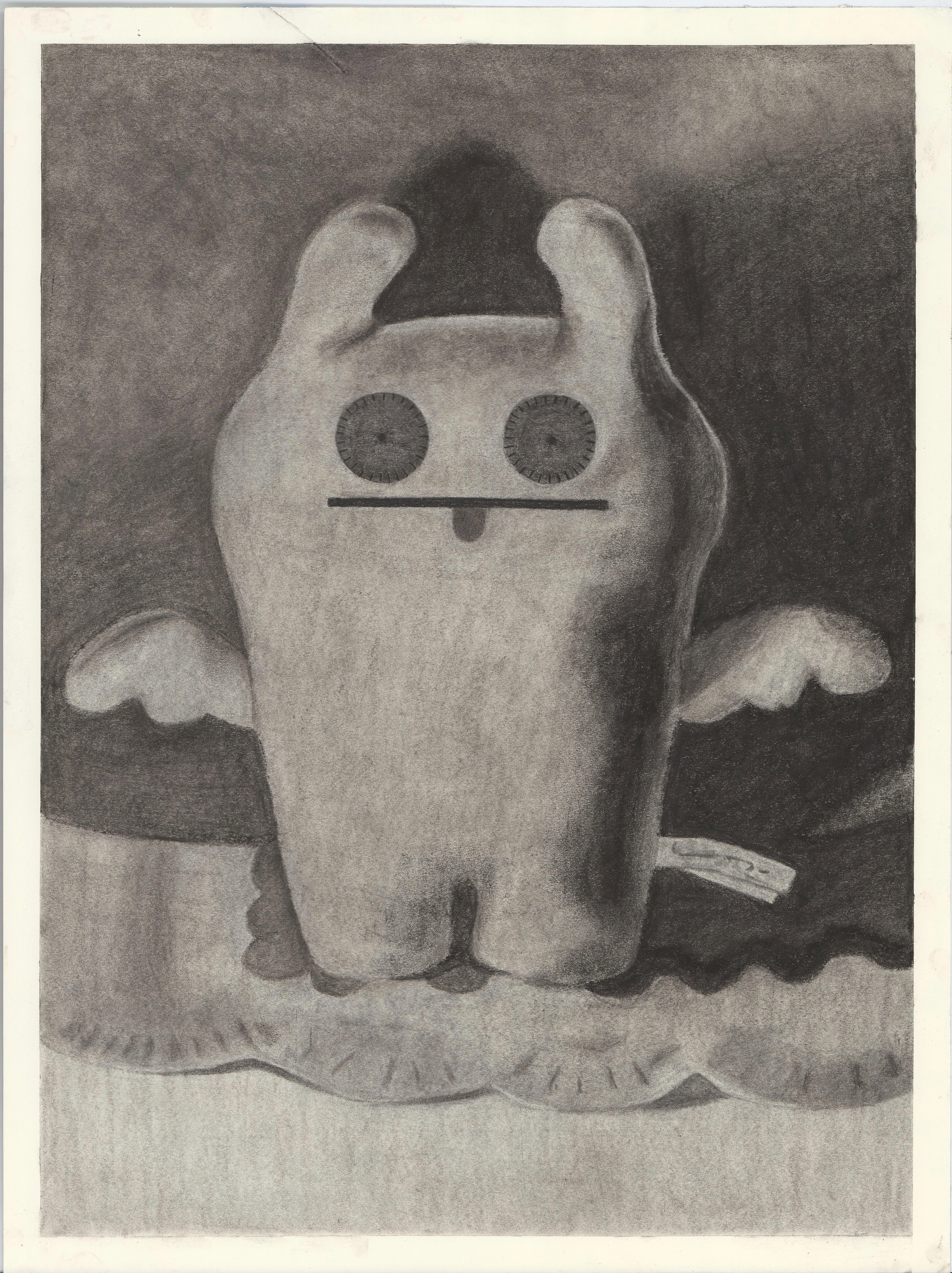 Charcoal Still-Life Drawing of Ugly Doll Plushy